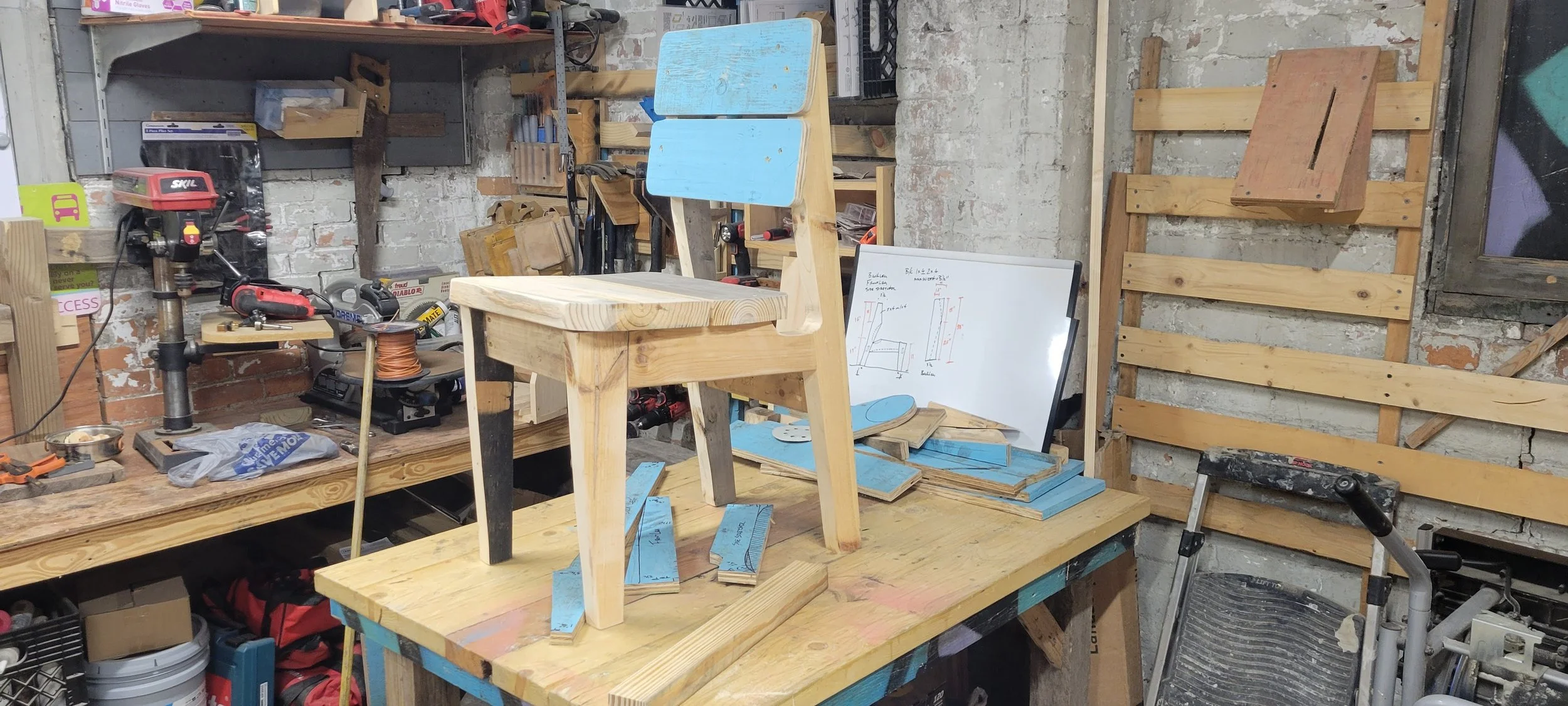 We established the Freedom Dreams Carriage House Workshop in 2021 rooting ourselves in our neighborhood participating in the practice of Regenerative Neighborhood Development (RND), a method established by Sweet Water Foundation in Chicago, IL. From the Carriage House Workshop we implement a core component of RND, design//build education.